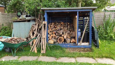The greenhouse only really fell out of use, at the beginning of the noughties, when I became tied up with running our off-license business, seven days a week. Being a timber-framed construction, thewooden sections running at gutter height, will need replacing, but that job can be done piecemeal, along the way. So, with a little bit of expense, plus a bit of time, the greenhouse is now water-tight and ready to see service from next spring. Why am I telling you this? Well, the reason is when I was working five days a week, weekends were the only time during the winter months that I could get outdoor jobs sorted. But with other mundane, but obviously essential domestic tasks, such a shopping, cleaning, washing etc., requiring at least some of my attention, there wasn’t much time for outdoor projects, or gardening in general, during that part of the year. Now, having doubled my free time, all the outstanding and niggly little jobs are slowly getting done, as are some of the more major projects. The song, “What a difference a day makes,” might well have been true, but adding an extra day makes an even bigger difference. I’ve a walk planned for tomorrow - weather and knee permitting, and on Monday James the Sweepis coming to sweep our chimney. Once that’s done, we can light the log burner and start utilising the large pile of logs we’ve accumulated over the past couple of years. With the recent hike in energy bills, the ability to keep the ground floor of the house cosy and warm, at minimal cost, is something not to be missed, especially with winter fast approaching.