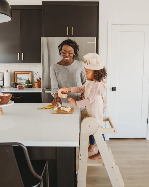 Providing a safe place for your kid to observe, try, and learn, the Mini Chef Convertible Tower serves as a sturdy kitchen stool and can transform into a snack table with a few simple maneuvers. There’s a safety bar on the back and an adjustable step so both you and your kid can feel totally confident.