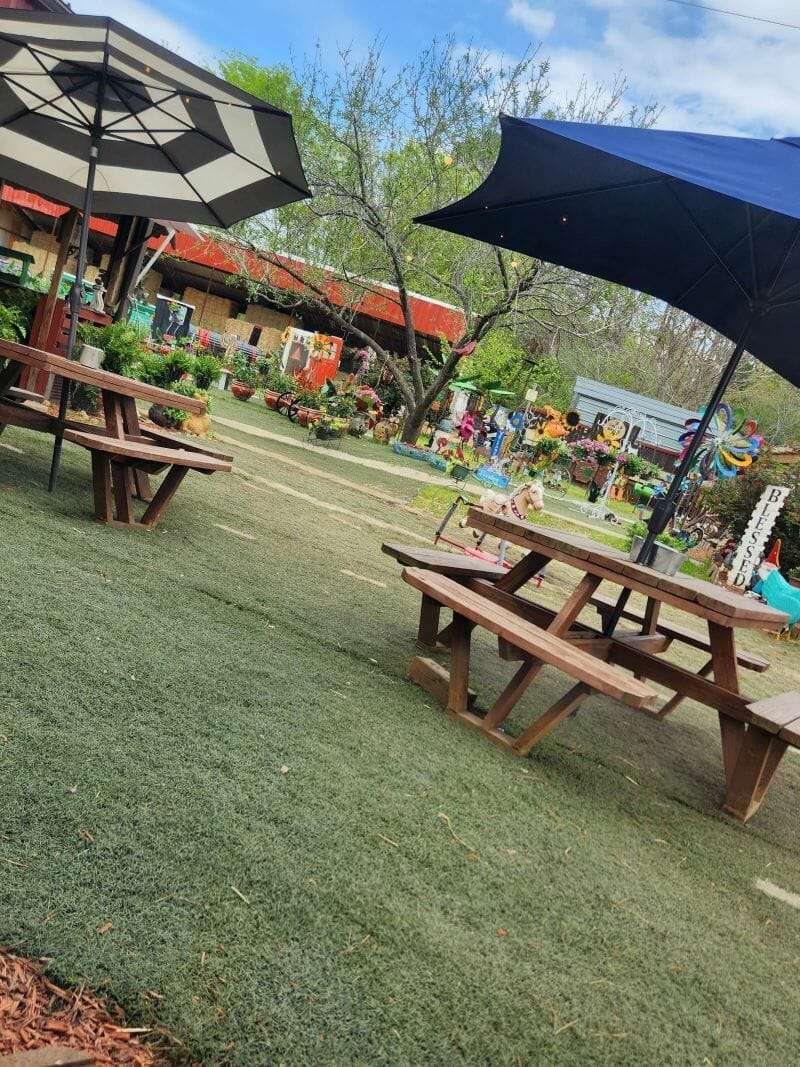 The backyard of Three Chicks is “the spot” this time of year. That’s where visitors can find tables and benches for dining or relaxing.