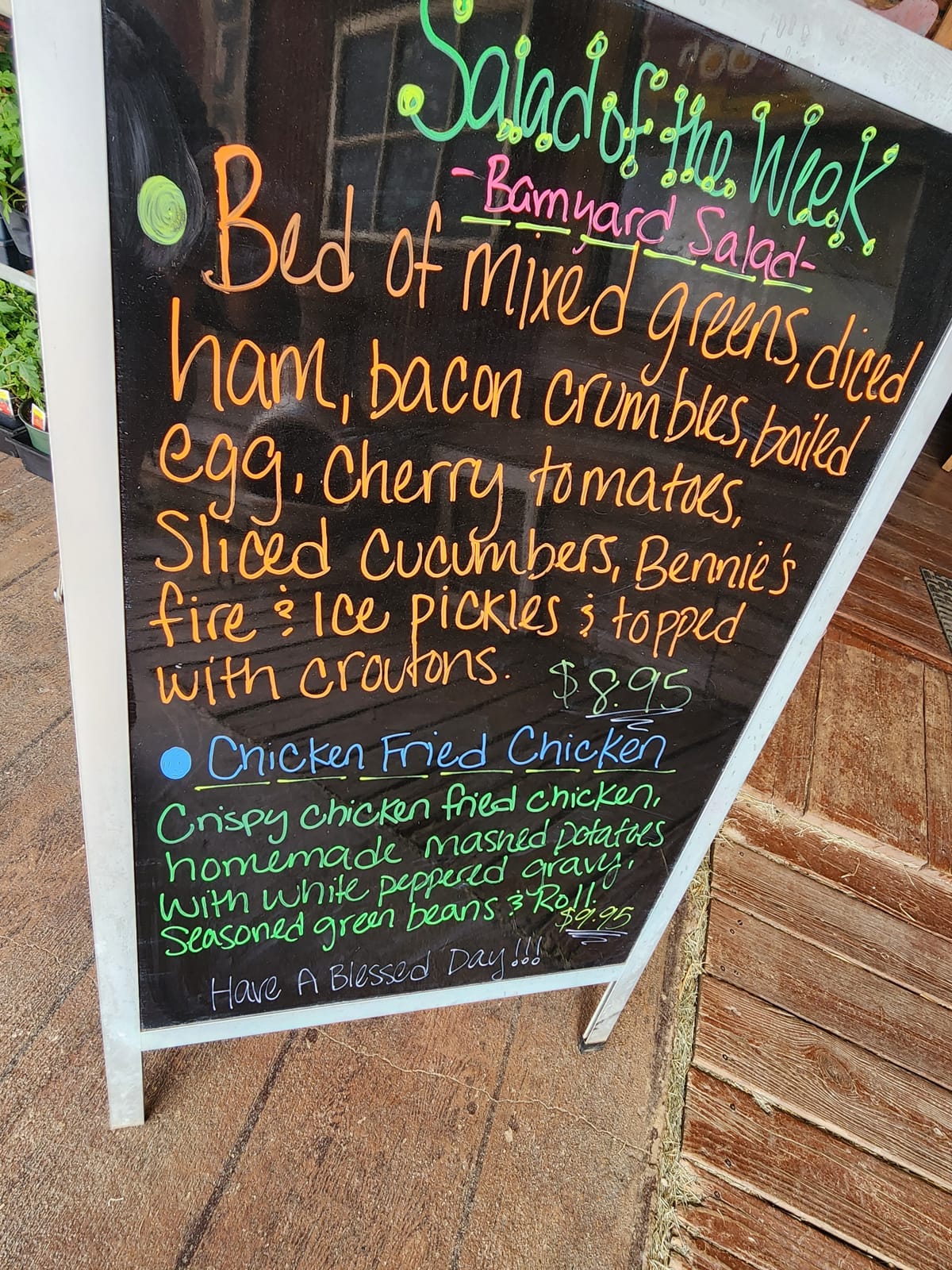 Visitors to Three Chicks should plan to make a weekday visit to enjoy the cafe during open hours and block off a couple of hours minimum to spend. That allows time to enjoy a meal and browse all of the garden offerings outside as well as the selection of local merchandise, honey, canned goods, old-time candies and unique gifts and hardware inside the store.