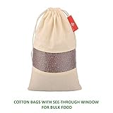 Safe environment friendly bag polyester bpa free made from natural unbleached cotton The opening with wide top enables an easy openclose you can keep your fridge organized ideal to use as a produce saver containers The cotton mesh bags set includes 1 small 12×8 1 medium 12×14 2 large 12×17 Muslin cotton bag for bulk food includes 1 small 12×8 1 medium 12×14 1 large 12×17 And a cotton bag for leafy veggies 1 large 12×17