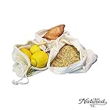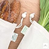 MIUVA - Foldable washable portable discover convenience with your eco friendly grocery bagsDrawstring and poplock for conventient opening and closing Easily portable trouble free and hassle free when bringing these along on your next shopping trip You can wash the produce directly in these bags and then place them straight into the fridgeless food wasted and great for the environment Multisize to meet your variety usage we carefully selected 3 mesh produce bags 3 muslin bulk food bags in 3 sizes12x8in 12x14in 12x17in and 1 bonus cotton net reusable grocery bag1817in12in long handle