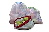 Reusable mesh produce bags of 9 bags set when you buy you get a set of nine reusable mesh drawstring produce and vegetable bags The set includes two small 12x8in five medium 12x14in and two large 12x17in premium reusable produce bags with tare weight