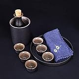 MIRUIKE - Full of oriental culture sake set with warmer is suitable for asian cultural loverjapanese technology traditional craft ingenious bottlemouth design prevents water leakage Humanized design easy to use easy to clean safe in dishwasher bottle bodygroove design Safehandling for more comfort Affordable gift set included 1x sake pot 6x cups1x tray1x sake pot wamer All in sturdy gift box safe and beautiful prefect gift for thanksgiving halloween christmas etc