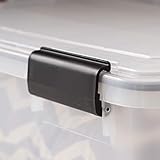 IRIS USA, Inc. - 6 durable buckle latches on weathertight tote lid secure contents inside Weight capacity 75 lbs Max Back wheels and pull handle provide easy mobility for iris container storage tote Reinforced lid provides stability for stackable plastic storage bins Weathertight storage seal on storage tote is the ideal way to keep stored contents clean and dry
