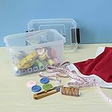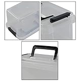 Teyyvn - Clear box with black latch Outside dimensions 83 x 59 x 49 inside dimensions 67 x 45 x 41 Manufactured from durable plastic Ideal size for organizing small items Includes 4 totes 4 lids