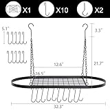 Easy to assemble package includes grid rack with 217 hanging chains 10 pot hooks and mounting hardware Measures approximately 323 l x 165 w x 250 h Hanging rack can easily withstand 40lbs