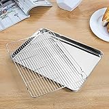 TeamFar - Easy clean cleaning is a breeze even in hand washing dishwasher safe free your hand from now on tray 95 x 125 x 1 inches rack 9 x 115 x 05 inches fit most home ovens Healthy both the baking sheet and rack are made of pure stainless steel without aluminum or any other materials no more chemical substance leaking into your food Crafted the baking tray has mirror finish surface to reduce the risk of sticking smooth edge no rough spot cooling rack fit perfectly inside the pan to avoid food spillage