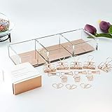 Accessorize your work clear acrylic with rose gold modern design style will add some fashionable elements to your workplace Gift box packaging Great for selfuse and as a gift Package includes 101 x35x16 inches rose gold desk organizer 1 notepad with 330 sheets size 3 x 3 inches special features rose gold gilded edges 5 clips and 10 creative paper clips