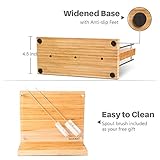 Widened base and antislip feet this bamboo knife holder with a 45inch base includes an antislip mat on the bottom making it safer to use on slippery countertops than other knife blocks The secure design means no more worrying about knives slipping skidding sliding or wobbling around