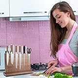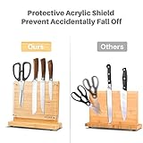 Enhanced magnet with four super strength hidden magnets this knife rack can hold a variety of kitchen knives securely Reach knives more easily quicker more safely Suitable for common household kitchen knives and other metal kitchen toolssteak knife bread knife chef knife fish knife bottle opener etc Note not for ceramic knives Gorgeous design are you tired of a messy kitchen counter You need a partner to help organize your knives Securas magnetic knife holder is made of natural bamboo and is just as elegant as it is functional Our universal knives block can safely store knives with blades measuring up to 86 inches 22 cm Doublesided design holds up to 10 knives
