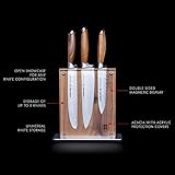 Universal fit magnets embedded in the acacia wood allow up to 10 knives to fit in any arrangement or order Timeless display imagine your knives floating on natural acacia wood behind a crisp acrylic shield pair with our bonded teak or zebra wood collection for the perfect display