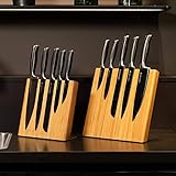 Durable long lasting this wooden knife block is strong and sturdy to hold heavy knife sets and is finished with a beautiful bamboo veneer thats naturally resistant to grime and easy to wipe clean Wide angled openings the horizontal slots put less wear on the blades and are angled with a wider opening for easier handling and to fit everything from smaller steak knives to larger chef knives
